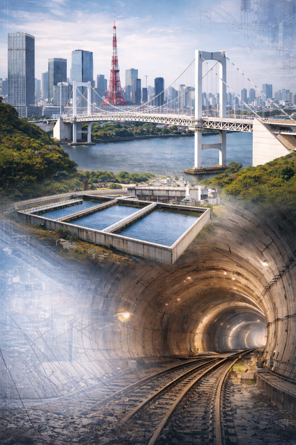 上下水道施設や地中構造物に対する耐震設計を総合的にサポートしています。浄水場・ポンプ場・下水処理施設などの主要インフラでは、構造設計から耐震補強、老朽化対策まで一貫して対応し、最新指針に基づく最適な提案を行います。また、ボックスカルバート、立坑、共同溝などの地下構造物では、3Dモデルや動的解析を用いた精度の高い評価を実施。地震時挙動を詳細に把握し、安全性と経済性を両立した合理的な設計を提供します。インフラの長寿命化と災害に強いまちづくりに貢献します。 -